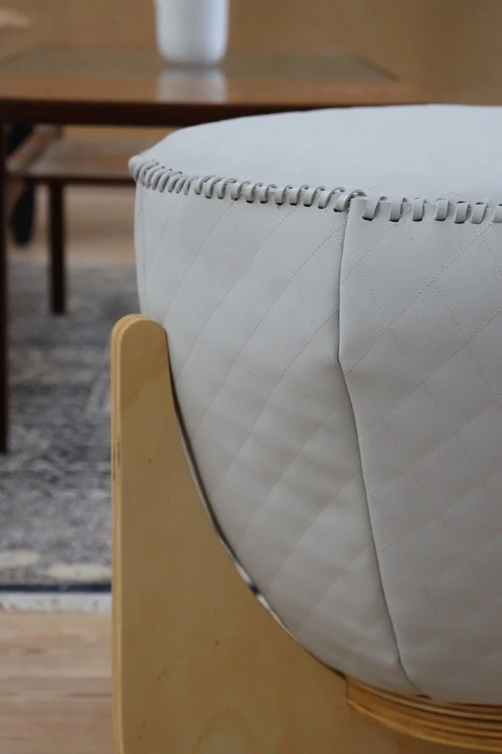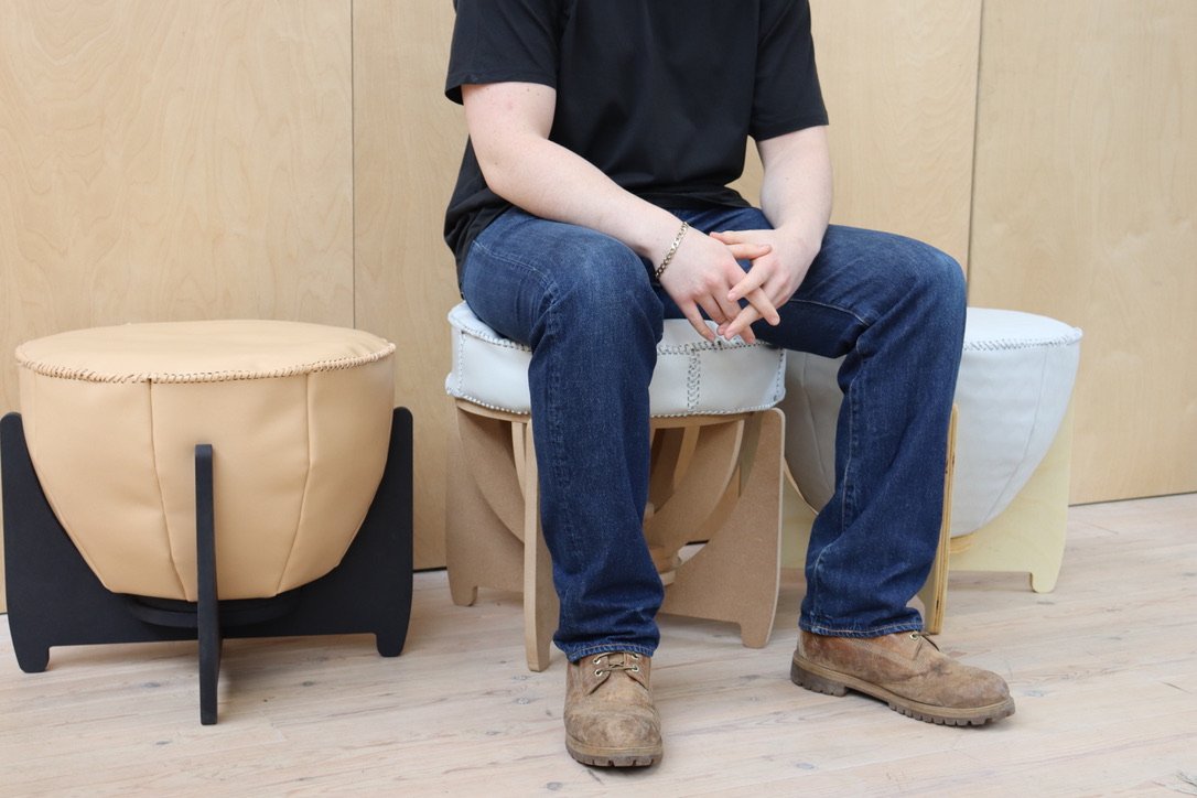 The Occy stools centre on cruelty free innovation. This is accomplished by showcasing MIRUM. MIRUM is a plant based, plastic free vegan alternative to animal leather. Made from natural rubbers and plant oils, the material can be endless recycled. The manufacturing process requires no water, in contrast to the leather industry’s massive water waste production. MIRUM is part of the future of furniture.